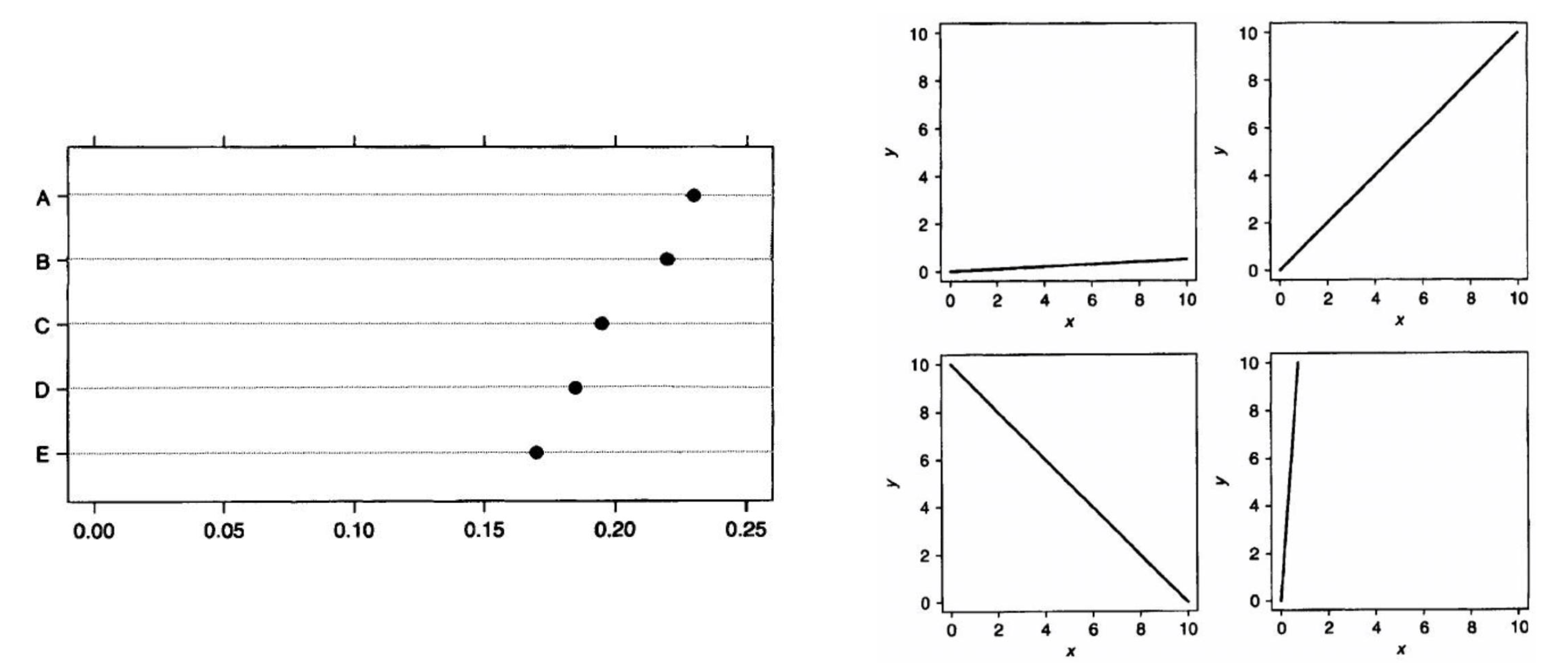 We judge positions along a common scale well. We judge slopes well (relative to 45%)