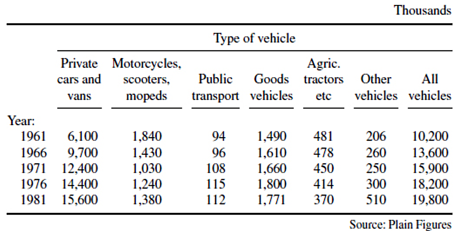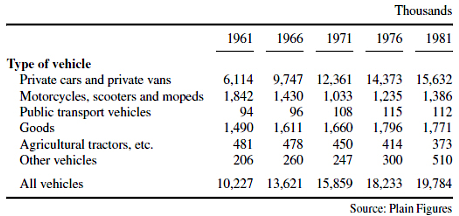| Table 2.5 Motor vehicles currently licensed in UK | Table 2.6 Motor vehicles currently licensed in UK. |