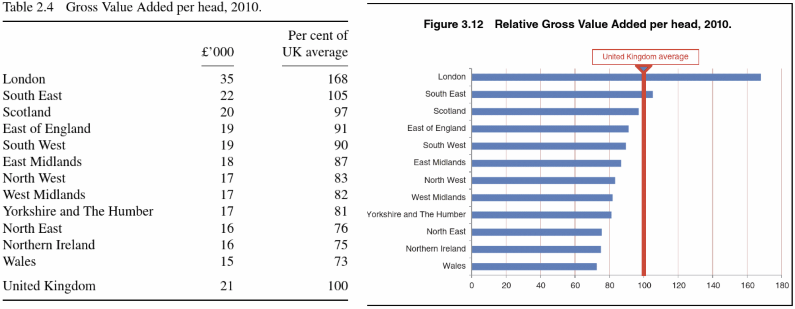 Value added in London is over 60% above the national average; all other regions sit at or below the national average |